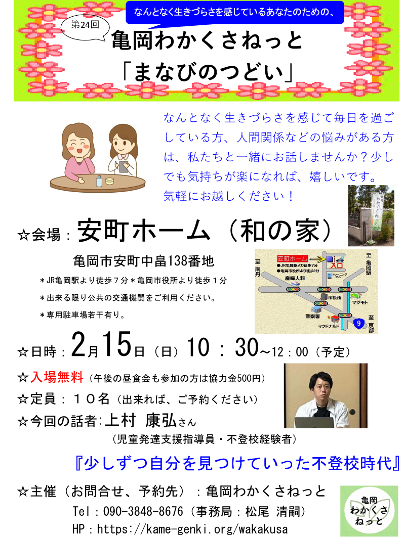 ひきこもり、不登校などの関係者(当事者及びその家族、支援団体など)による、 気さくな勉強会&交流会